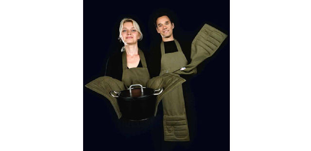 Ce tablier élégant et ingénieux est doté de maniques directement intégrées pour tout avoir sous la main et cuisiner comme un pro.